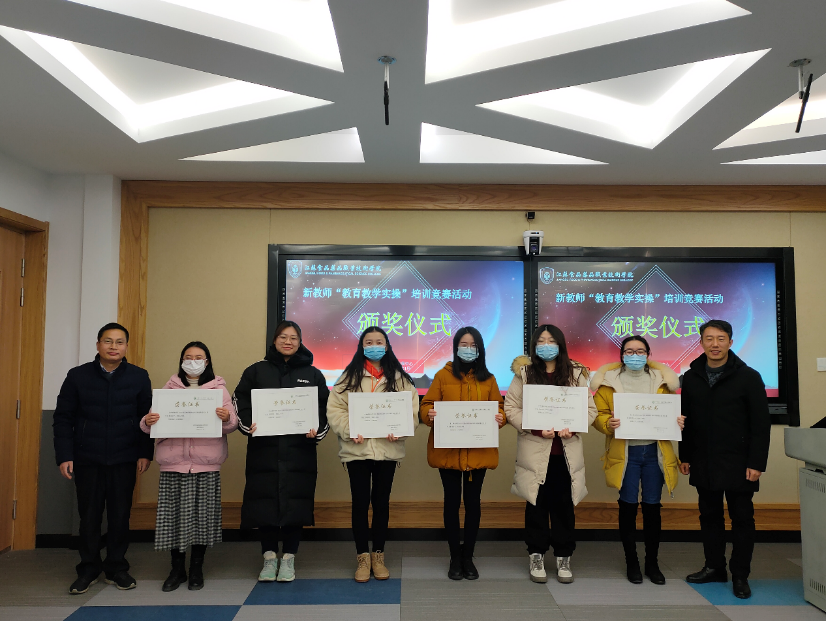 本次面向新教师的“教育教学实操”竞赛包含课件竞赛、应用文写作竞赛、新入职教师演讲竞赛、新教师教学设计竞赛、新教师说课程竞赛、新教师管理学应用竞赛等六项。其中刘宝玉,严艾文、张婷、童盼、叶子、胡爱华、王天然分别获得了各个分赛项的一等奖。教务处处长贾韶千、人事处处长丁正亚为新教师获奖代表颁奖、并颁发获奖证书。