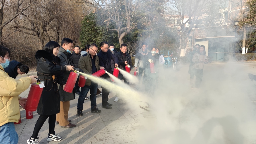 首先保卫处王生辉老师向参加演习的老师讲解了灭火器的相关知识,对不同场景灭火器的选择和使用进行了介绍,随后演习正式开始。模拟火情现场火光冲天,浓烟滚滚。各位老师纷纷上前拿起灭火器进行灭火,火情很快便得到控制,危险随即接触,达到预期效果。