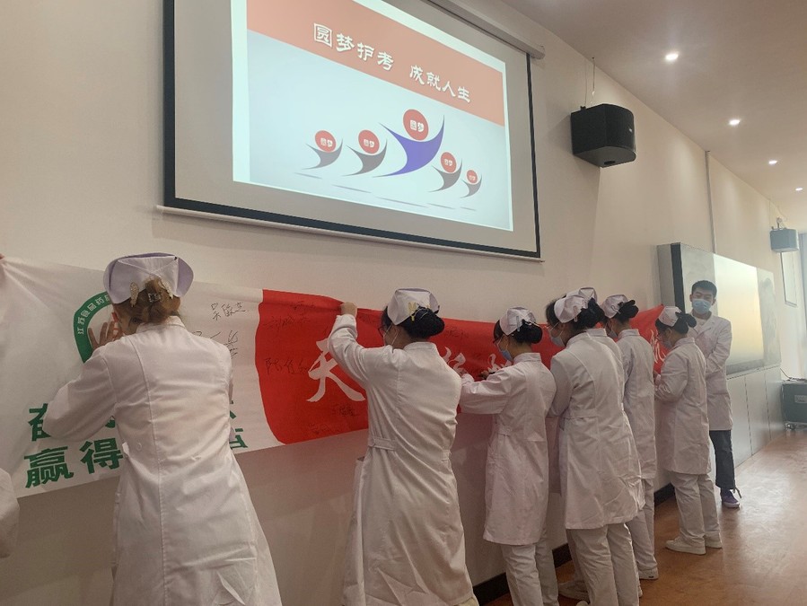 为增强学生学习的积极性和主动性,树立坚韧顽强的学习信念,确保在苏考生100%通过2021年护士执业资格考试,护理专业1月18日启动为期96天的护士执业资格考试的辅导工作,学校从领导到一线专任教师高度重视护士执业资格考试工作,并将其作为护理教学工作的一项重点工程抓,1月18日上午,护理学院在护理实训中心召开“天使扬帆 护梦起航”为主题的2021年护理专业护考辅导动员大会。