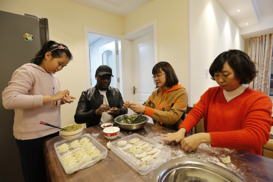“当了解到高老师今年再次一个人留在学校时,我就想着邀请他和我们几家人一起聚一聚,尽管不能回家,年味也不能少。”周宁老师说道,她真诚邀请了高老师和留淮的亲戚们到自己家中以中国传统方式庆祝新年的到来。写春联、品茶道、包饺子,大家一起感受浓浓中国味儿的新年,感受中国传统文化。