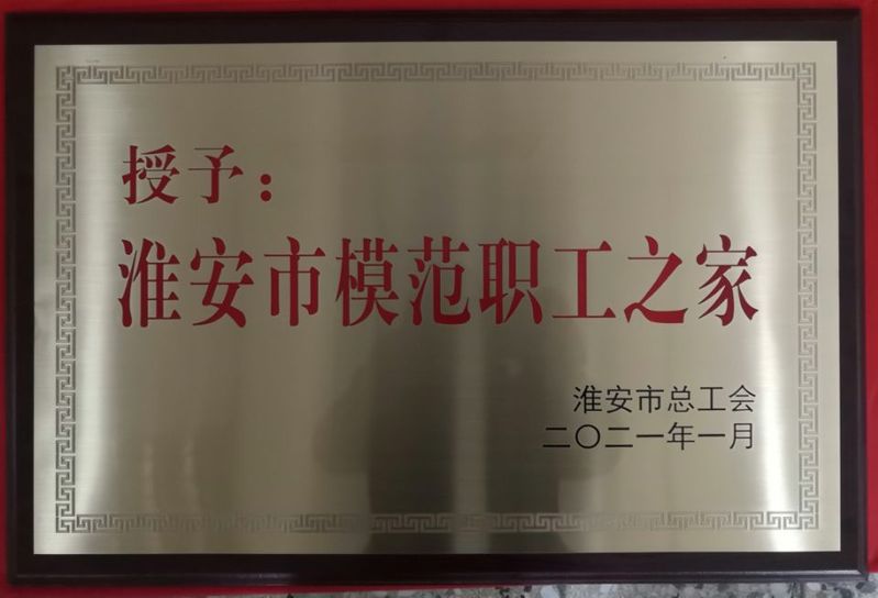 2021年1月16日,淮安市总工会印发《关于淮安市模范职工之家、模范职工小家、 优秀工会工作者的通报》,BBV电子·(中国)网站被授予“淮安市模范职工之家”称号。