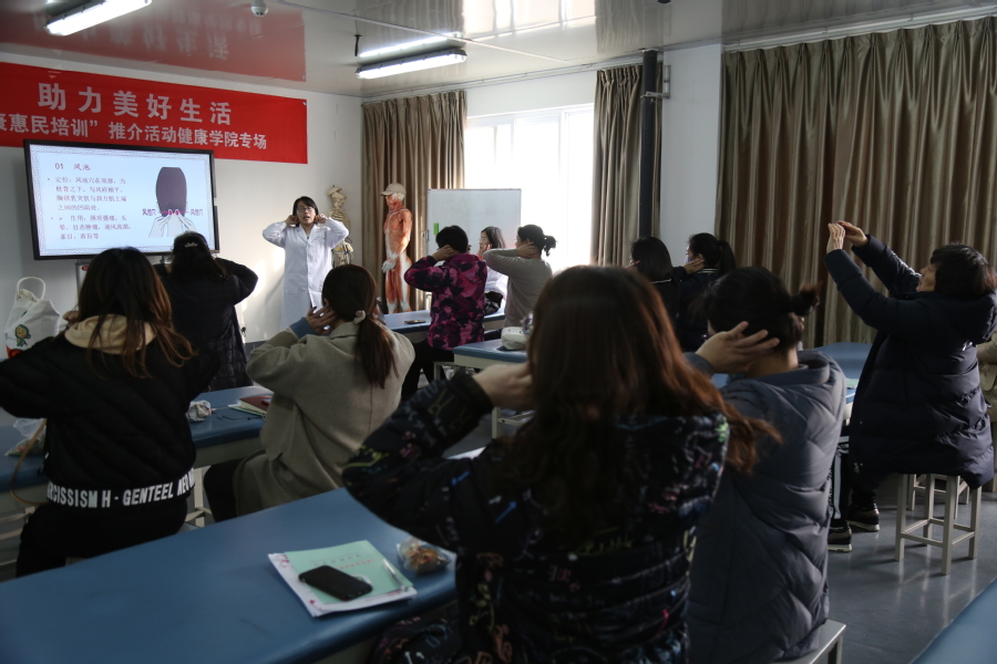 BBV电子·(中国)网站健康学院东方博士以“中医膳食养生”为题,为来宾们呈现了一堂精彩的讲座。随后,大家来到学校6号实训楼参加了中药香囊制作、中医推拿、药妆手工制作、中医保健、中药配方足浴等健康养生项目。