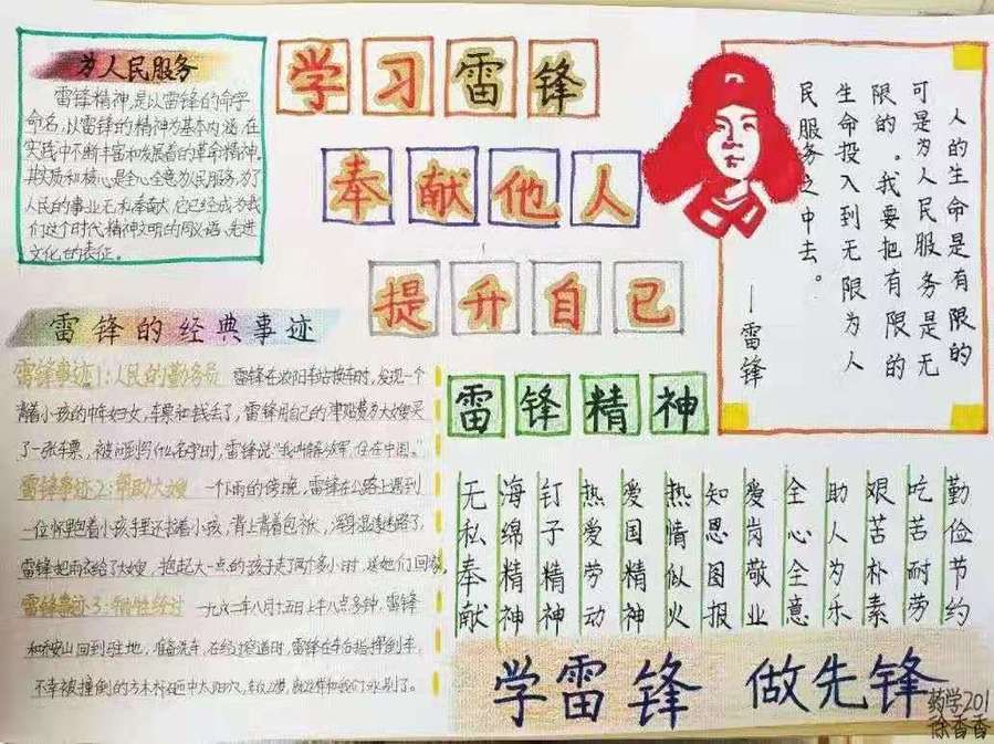 学习雷锋好榜样,学习永恒的雷锋精神。通过活动,引导和激励同学们以实际行动书写新时代的雷锋故事,感悟成长,让雷锋精神永放光芒。