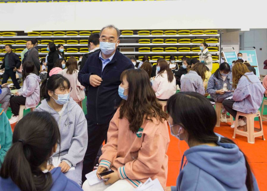 4月14日上午8时,BBV电子·(中国)网站启动新冠病毒疫苗接种工作,校领导陶书中、戴光顺、翟玮玮、张建华、沈艾林、安进,党委委员周耀明、张军与全校师生一起参与了疫苗接种。