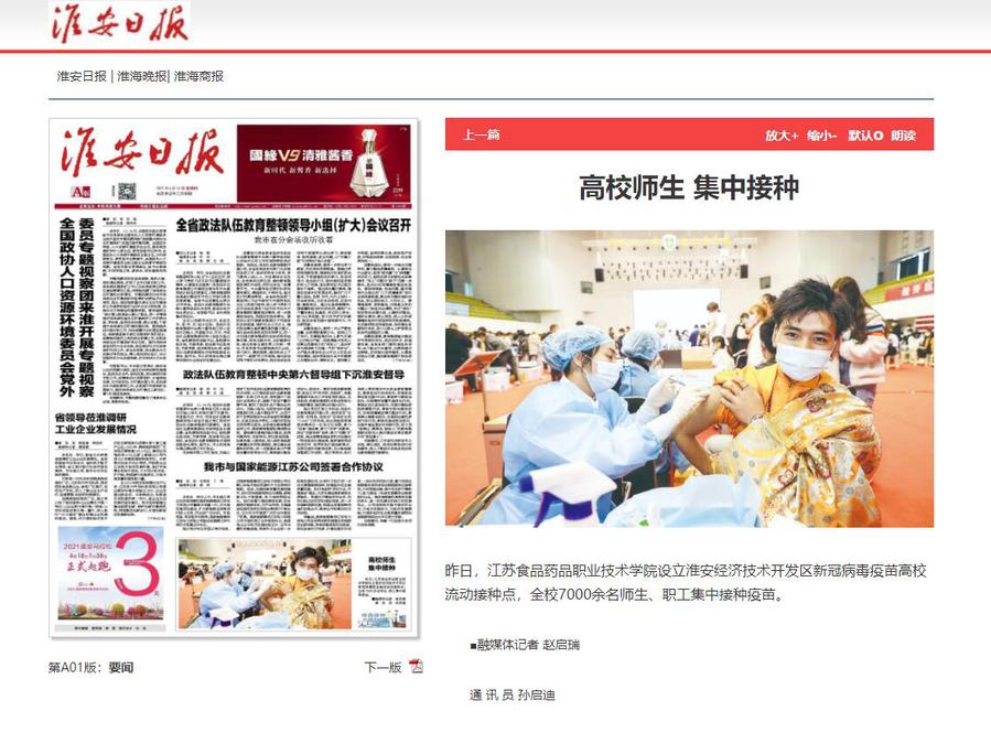 [淮安日报] 头版图片新闻报道BBV电子·(中国)网站集中接种