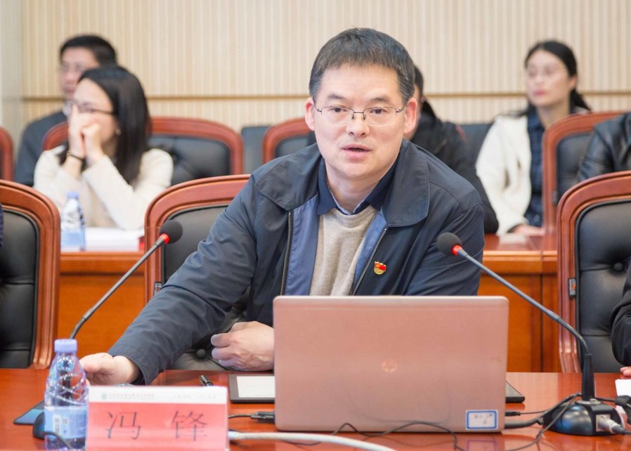 ▲校长冯锋介绍学校情况