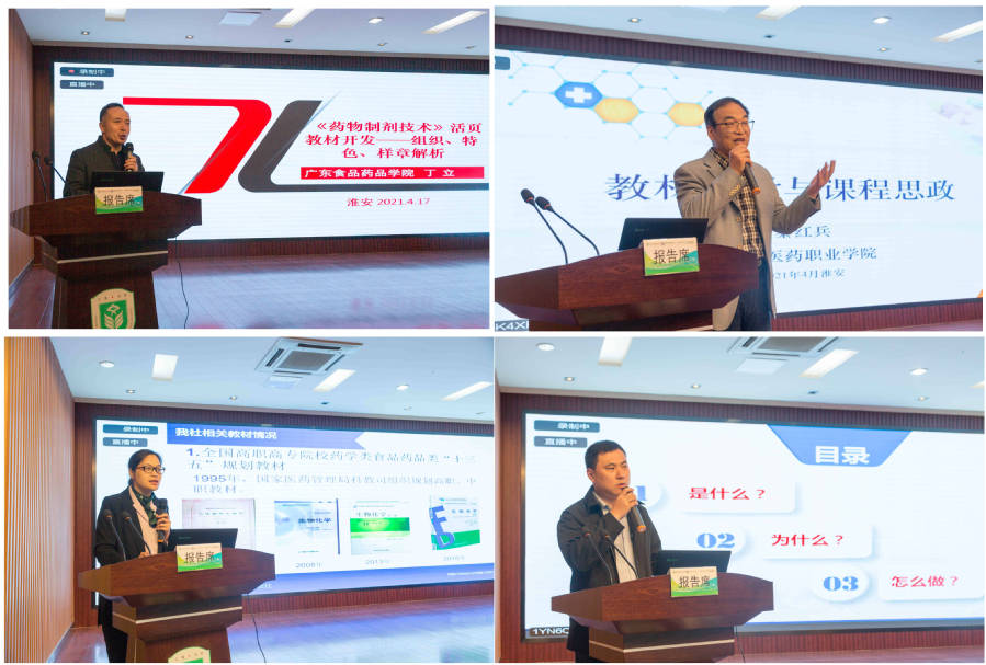 随后,广东药品食品职业学院制药工程学院院长丁立、江苏医药职业学院教授秦红兵、中国医药科技出版社有限公司教材编辑中心主任何红梅、中国医药科技处出版社有限公司数字出版中心主任罗万杰分别就教材建设进行了经验交流与心得分享。