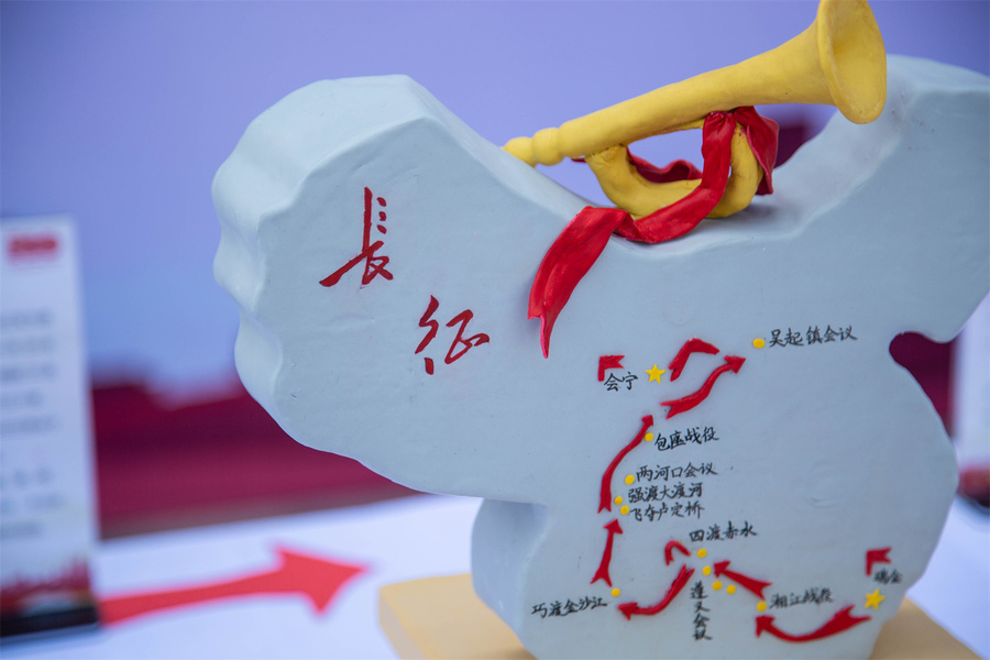 活动过程中,酒店专业师生负责展台设计和布置,面点、烹饪等师生按照党史发展历程摆放自己作品。本次活动共展出14件作品,作品栩栩如生,生动逼真的呈现了作品原貌,吸引了众多师生的驻足、留影。参观师生看到作品后惊叹于师生技术的高超和魅力。果酱画作品《开天辟地第一桨》,采用简笔画加上色的形式,展现了红船,表达红船精神的一种传承;面塑作品《红军远征威名扬》,生动形象的展示了红军万里长征路线和胜利场面;冷拼作品《5G微波联姻强》,展现了中国的科技及发展等。