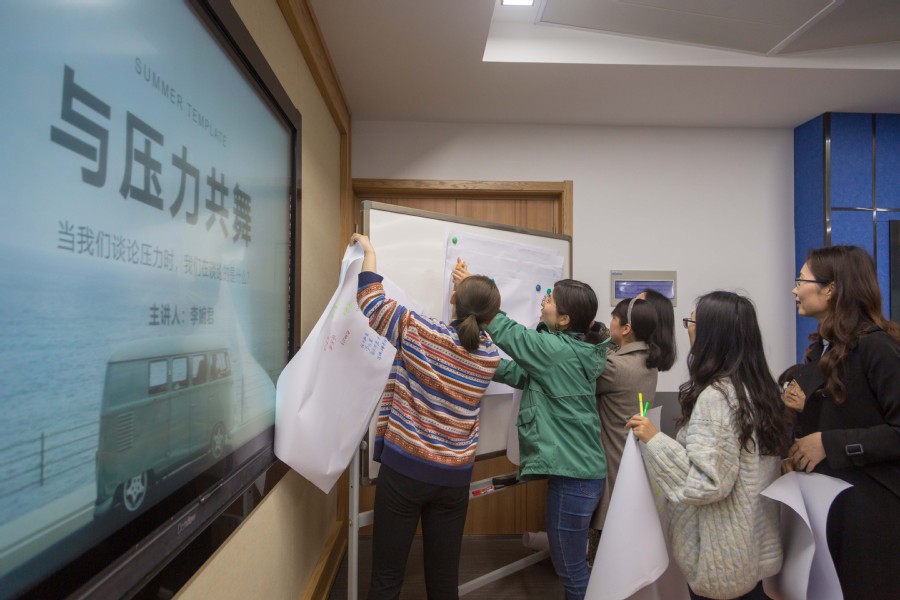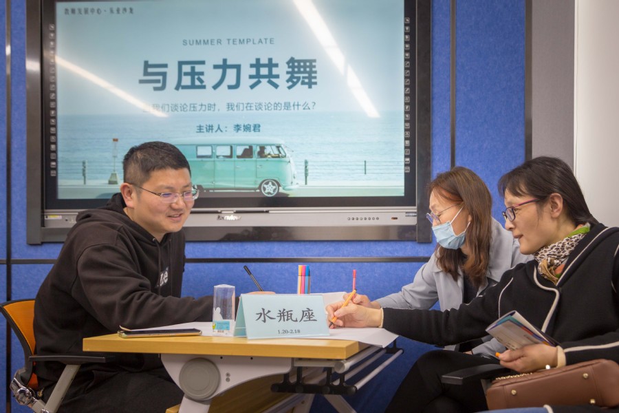 本期沙龙邀请BBV电子·(中国)网站教师培训师、心理中心主任李婉君主持,主题是“与压力共舞”。活动中,大家按照星座分组就坐,并在星座卡上写出压力来源,再通过主讲嘉宾的解读和分析帮助参与的教师更好的认识自我,觉察内心。从放下“完美”、理解压力、缓解焦虑、自我调适四个部分对教师如何应对心理压力进行了深入阐述和充分交流,收获了很好的培训效果。整场活动气氛轻松活泼,老师们纷纷表达参与这样的学习交流活动是增进理解、疏解压力、放松心灵的有效方式,学会自我调适以更好地工作和生活。