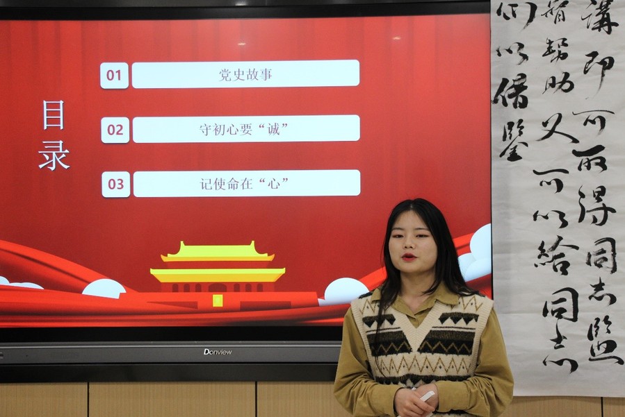 第二环节分别由机电工程学院和信息工程学院的四名同学进行党史故事大比拼。信息工程学院的赵成龙同学分享了一袋干粮的故事,一袋干粮不仅仅是人民生存的希望,更是党性光辉照耀下的伟大人格。吕金超同学带来的“三杰闹龙潭,谍史写传奇”给同学们回顾了李克农、钱壮飞、胡底同志的反围剿事迹。韩香茹同学从一条画舫说起,描绘了中共一大惊心动魄的召开过程。李逸凡同学用一根拐杖的事迹告诉大家保持广大党员谨守朴素的生活作风的重要性。比赛在紧张热烈的气氛中拉开帷幕,随着比赛的深入,各位竞赛选手们展开激烈的角逐。
