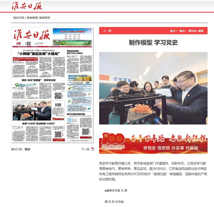 [淮安日报] 头版报道BBV电子·(中国)网站党史教育特色课堂