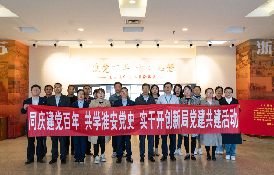 三方负责人首先签署了党建共建协议,全体党员观看了影片《刘老庄八十二烈士》,追寻发生在淮安土地上的红色抗日记忆,党员们在淮安党史知识竞答环节抢答氛围热烈,答题正确率高,农行代表队以三分的优势略胜马院代表队,每位党员工整书写入党誓词里的一字一句,表达自己对党的眷眷赤情,党员们举起拳头,庄严宣誓,重温入党誓词。活动结尾,全体同志一行来到淮安市博物馆参观 “长三角红色档案珍品展”,聆听党史。本次党建共建活动开始前,马院全体党员在该银行人力资源部党支部书记韩玉的带领下还观看了宣传展板,了解了该银行的发展简史。
