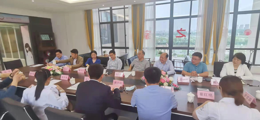 5月18日下午,BBV电子·(中国)网站党委书记陶书中、校长冯锋,副校长翟玮玮、安进等一行八人赴淮安市开发区医院洽谈校院合作项目。