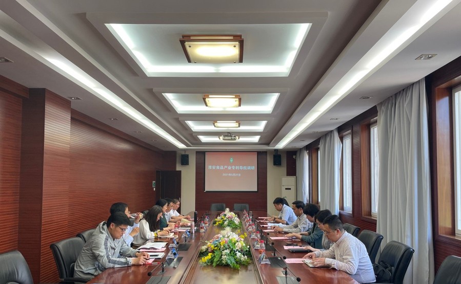 参会双方就食品行业各技术分支发展状况,淮安食品产业发展概况及其重点发展方向,淮安食品产业重要技术、新兴技术等专利布局情况,淮安食品行业各重点领域上游、中游和下游完整产业链中的相应企业情况,食品学院或者行业协会知识产权运营情况,许可、转让情况,食品行业国内外主要竞争对手,淮安食品行业主要人才研发情况,国内外食品产业发展的相关政策、鼓励措施和发展机制等,淮安食品产业(高校、协会等)对专利信息的需求和利用情况,淮安食品产业相关管理部门对专利信息利用和导航的需求等十个方面展开了深入的交流。