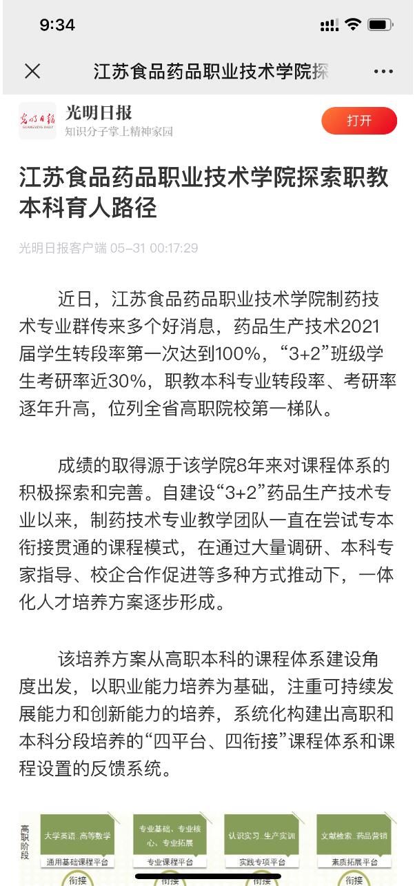 近日,BBV电子·(中国)网站制药技术专业群传来多个好消息,药品生产技术2021届学生转段率第一次达到100%,“3+2”班级学生考研率近30%,职教本科专业转段率、考研率逐年升高,位列全省高职院校第一梯队。