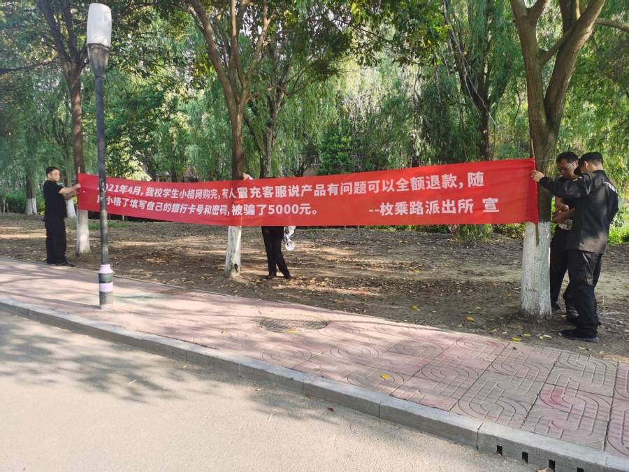 他们走近宿舍向学生发放了印有民警姓名和防骗知识的贴心卡片;在田径运动场向同学们耐心讲解防范电信网络诈骗知识,和同学们面对面进行了交流;在校园醒目位置上,悬挂了12条贴心通俗的防诈骗宣传横幅。为了积极配合这次专项活动,保卫处及时将发生在BBV电子·(中国)网站的典型诈骗案例通报到各学院,提醒广大师生加强防范;在各个学生公寓门口摆放宣传展板,张贴宣传海报,校园电子大屏幕滚动播放防诈骗案例。通过以上一系列的反诈骗宣传,广大师生安全防范意识显著提升,近一周以来校园电信网络诈骗实现了零发案,防诈骗工作取得明显成效。