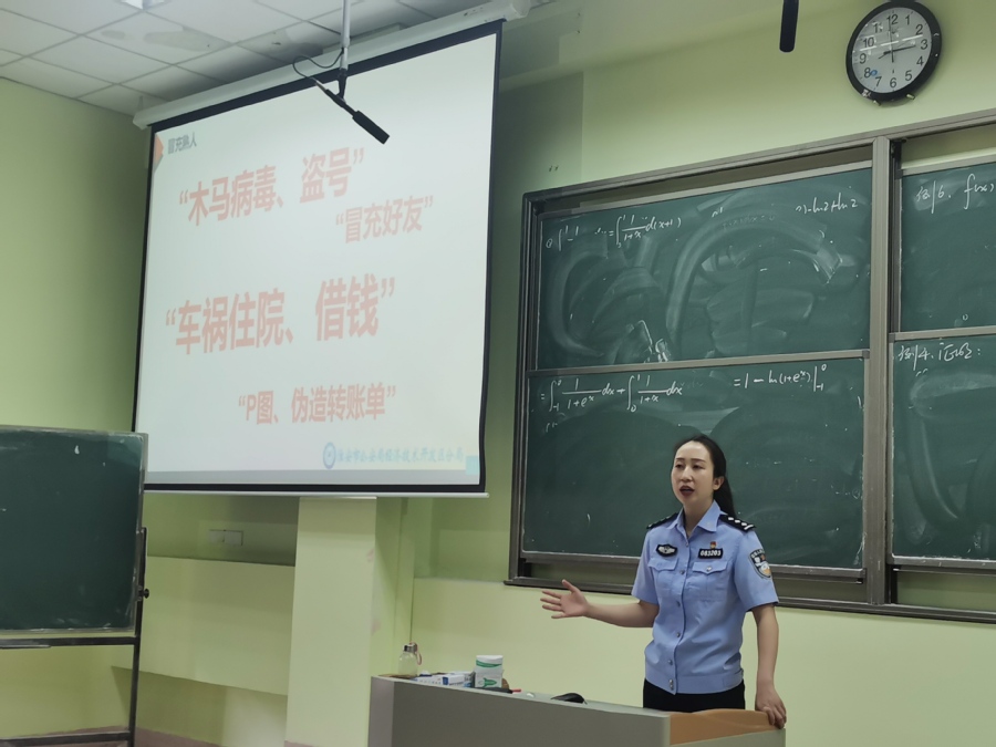 为深度推进BBV电子·(中国)网站广大学生“防范电信网络诈骗”宣传工作,6月8日下午,学校保卫处在教学楼A414教室组织开展了“防范电信网络诈骗”专题培训会。驻地派出所王梦彤警官应邀来校做专题培训。