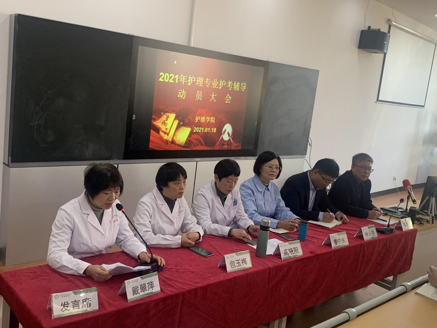 全国护士执业资格考试是我国护士行业的执业准入考试,是护生转变为护士的门槛。学院领导高度重视,多次召开考前动员大会,从大一起为每位学生安排学业指导老师,及时答疑解惑,学业指导老师认真分析护士执业资格考试大纲,紧跟最新考试大纲变化,帮助学生制定个性化的学习方案。学生毕业实习开始,专业团队根据考纲制定整体护考辅导方案和考核方案,从开始的每两周组织一次考试到后期的每周两次考试,督促学生学习并检测学习成效;寒假期间,护理学院全体师生放弃了假期的休息,邀请富有经验的护士执业资格考试专家和校内老师共同对学生开展线下辅导,进一步夯实了学生的专业基础知识和专业实践能力,解答了学生学习中的疑惑,极大地调动了学生们的学习主动性和积极性,为学生在考试中取得优异成绩奠定基础。