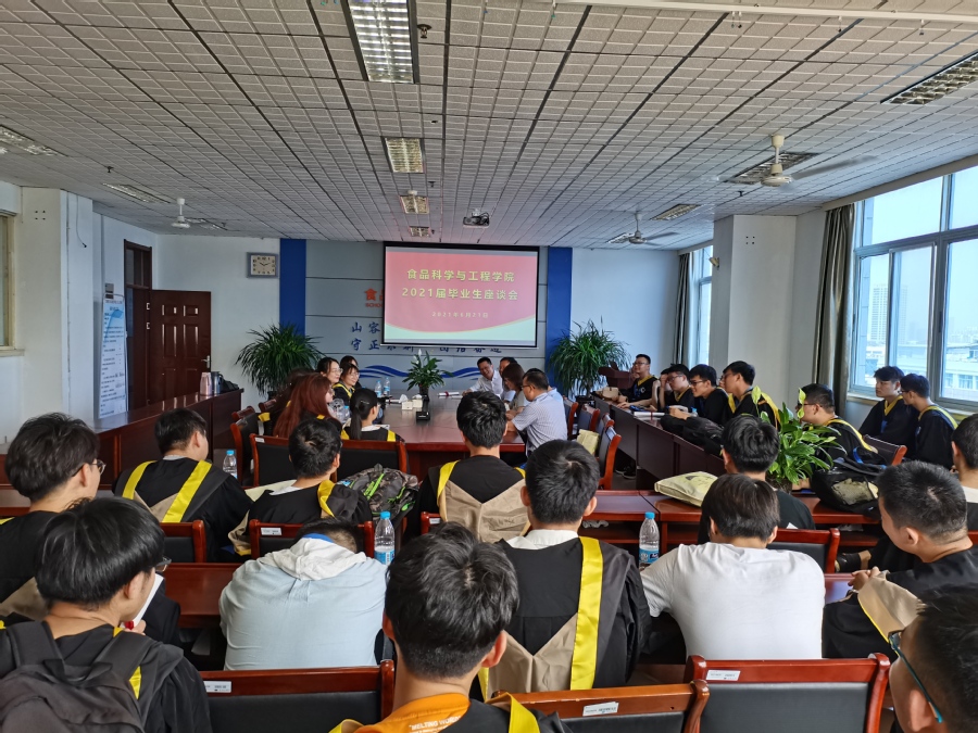 学位授予仪式前,同学们参观了江苏海洋大学海洋馆及食品工程实训中心,随后在食品科学与工程学院会议室召开了“4+0”专业2021届毕业生座谈会。江苏海洋大学食品科学与工程学院副院长盘赛昆、副院长吴少杰,BBV电子·(中国)网站食品学院副院长许旖旎、“4+0”专业负责人陈志杰、毕业班班主任李西腾及“4+0”专业2021届全体毕业生参加了此次座谈会。盘赛昆副院长和吴少杰副院长分别对同学们顺利完成学业及10名同学考取研究生表示了祝贺,并对同学们提出了殷切期望与要求。学生代表沈鑫蕾和胡姚两位同学围绕大学学习生活谈了各自的成长收获与感受,对学校的培养和老师们的付出表示了感谢,并对“4+0”专业两校联合培养提出了自己的想法与建议。