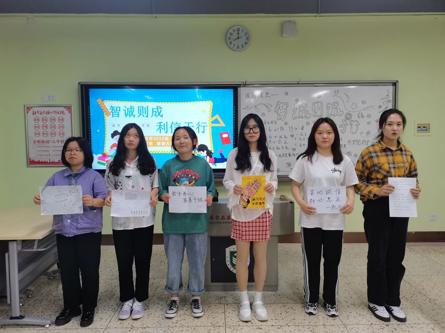 诚信剧场集,深化诚信教育。此外,各班还开展诚信小剧场、朗诵会等一系列新颖有趣的活动。通过丰富的形式和载体深化诚信教育。同学们积极加入了“原创大军”,以诗歌、书法、绘画等方式进行诚信宣传,抒发对诚信的理解感悟。在挥毫泼墨中勾勒出对品行人格的锤炼坚守。