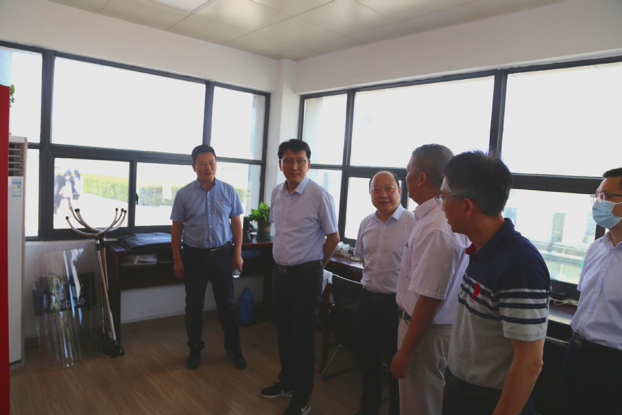 6月22日下午,市中级人民法院院长章润一行代表市委市政府来BBV电子·(中国)网站调研督导建党100周年安保维稳工作,副校长安进陪同调研。