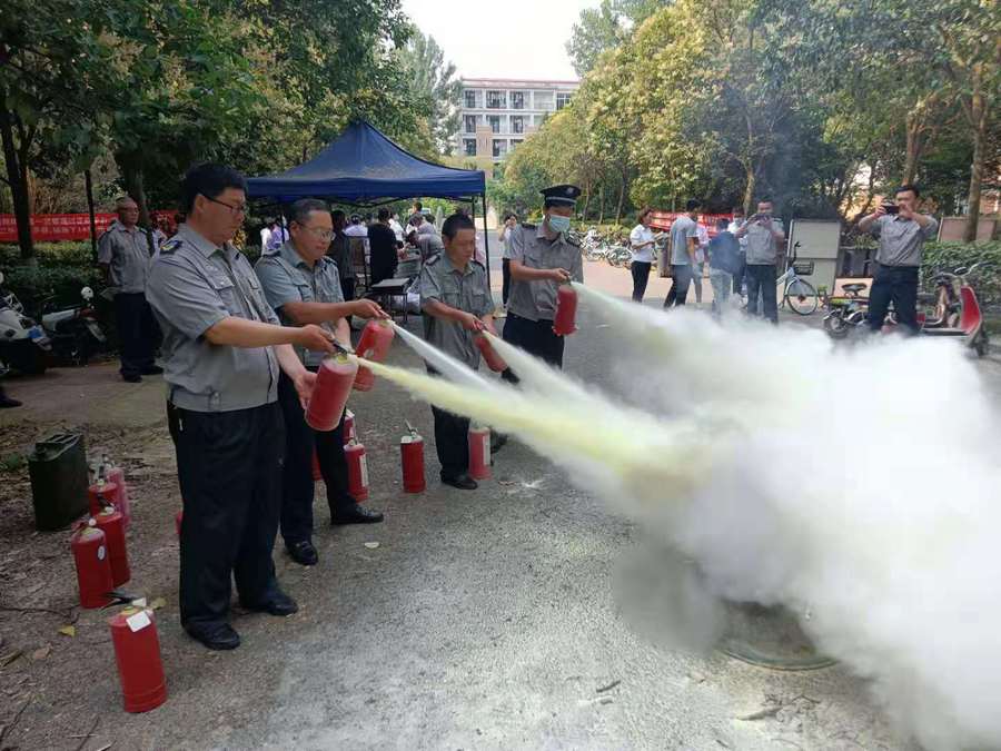 活动分两个阶段进行。首先进行消防安全知识培训,治安消防科王生辉同志向培训对象详细解读了《高等学校消防安全管理规定》的相关内容,进一步明确了学校物业和保安应当履行的安全管理职责,要求这两支队伍在本职岗位上务必懂得火灾危险性,会报火警、会扑救初起火灾、会组织学生逃生,熟练掌握“一懂三会”基本知识。之后保卫处又组织大家进行了灭火实战演练,使得所有参会人员在理论培训的基础上又熟练掌握了干粉灭火器的使用方法。