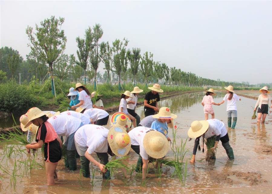 6月26日下午,药学院博爱青春志愿服务队联合省委驻淮帮扶工作队及希望社工赴三树镇新星村,为那里的留守儿童上了一堂别样的“稻田插秧”劳动实践课。
