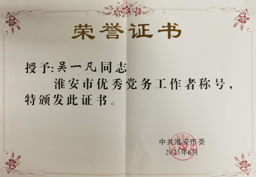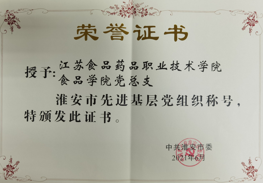 近日,《省委教育工委关于表彰2021年度全省高校优秀共产党员、优秀党务工作者和先进基层党组织的决定》(苏委教组〔2021〕25号)和《中共淮安市委关于表彰优秀共产党员优秀党务工作者先进基层党组织的决定》(淮委〔2021〕81号)文件下发,BBV电子·(中国)网站贾韶千同志被表彰为2021年度江苏高校优秀共产党员,吴一凡同志被授予淮安市优秀党务工作者,张二飞同志被授予淮安市优秀共产党员,食品学院党总支被授予淮安市先进基层党组织。
