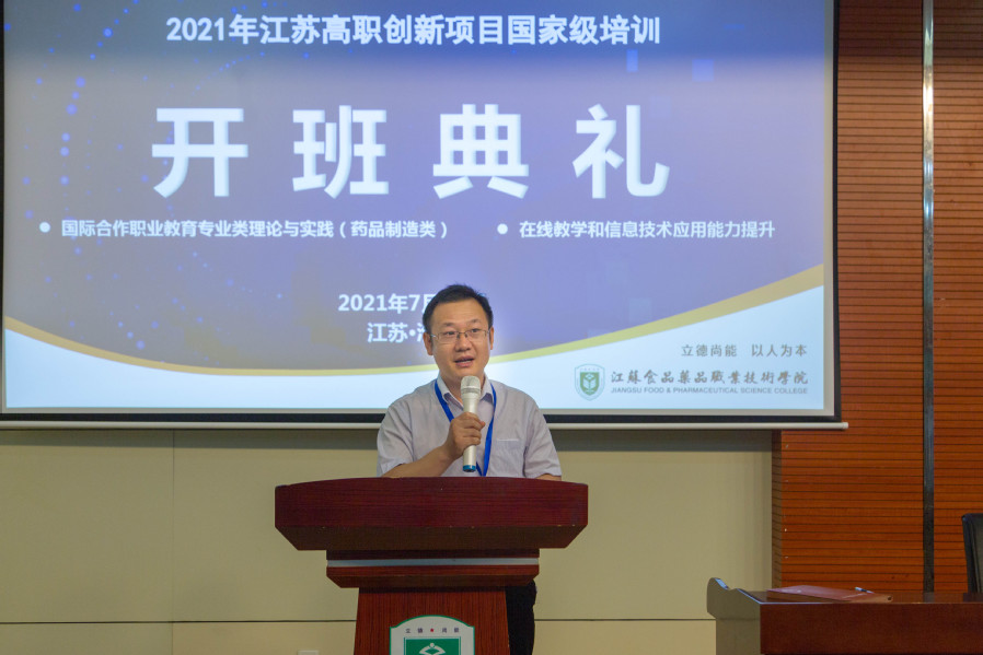 7月19日上午,BBV电子·(中国)网站承办的2021年江苏高职国培项目(2020年计划,制药技术专业群职业教育理论与实践国际合作、高职教师在线教学和信息技术应用能力提升)在BBV电子·(中国)网站图书馆图文报告厅举行开班典礼,来自江苏省高职院校的76名学员参加培训。
