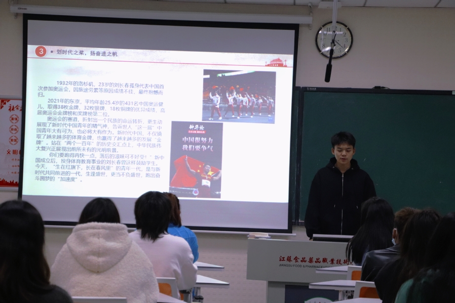 重温百年党史,汲取中国精神。本次团课,同学们首先认真学习了习近平总书记“七一”重要讲话精神,并结合视频和PPT的形式,共同回顾了中国共产党百年奋斗的光辉历程。主讲人朱鹏辉还以今年再次爆发的疫情和东京奥运会为例,号召同学们要以实现中华民族伟大复兴为己任,增强做中国人的志气、骨气、底气,要不负时代,不负韶华,不负党和人民的殷切希望。现场的同学们聚精会神,专心聆听,入脑入心,时而报以热烈的掌声。