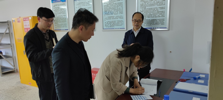 10月25日上午,为加强BBV电子·(中国)网站实验实训室安全管理,教务处对食品药品研究院化学品管理与使用进行专项检查。在本次检查中,研究院危化品仓库药剂管理及领取手续完备,总体情况较好。各公共实验室消防应急设备配置较为齐全,师生安全防范意识较高。但是部分科研实验室中,老师领用药剂后的管理与存放存在安全隐患,未做到按需领取用,按时归还。教务处处长贾韶千、食品药品研究院院长陆正清就这一问题进行沟通。陆正清表示今后将加强科研类实验室药品管理,未用完的危化品试剂每天下班后将统一存放,专人保管,坚决将安全隐患扼杀于摇篮之中。