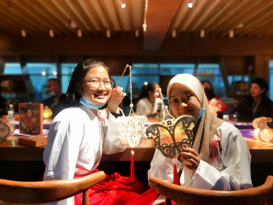 在为期一周的文化体验之旅中,留学生们近距离感受了酱酒文化、茶文化、蜡染工艺等中国特色文化,通过做手工月饼、绘平面菌落图、制木雕花灯、做蜡染扎染、学沏茶品茶等活动,留学生亲身体验了中国传统食物、手工艺品的制作流程,体会到了中国文化的魅力及不朽的工匠精神。此外,留学生们还参观了中国-东盟教育文化周展示馆,学习了解“一带一路”沿线国家的合作与发展,感知“平等互信、开放创新、互学互鉴、合作共赢”的跨文化交流理念。