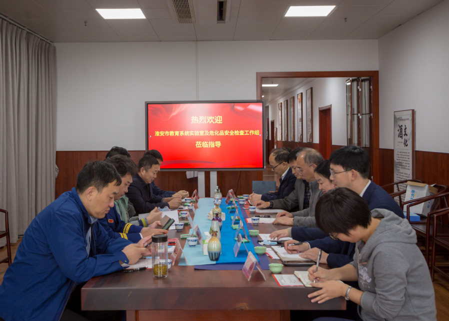11月1日下午,由市教育局、公安局、应急局、市场监管局、消防救援支队共同组成的淮安市教育系统实验室及危化品安全检查工作组在市教育局副局长胡金浪带队下,对BBV电子·(中国)网站食品药品研究院进行安全工作检查。BBV电子·(中国)网站党委书记陶书中、副校长翟玮玮全程陪同检查工作。
