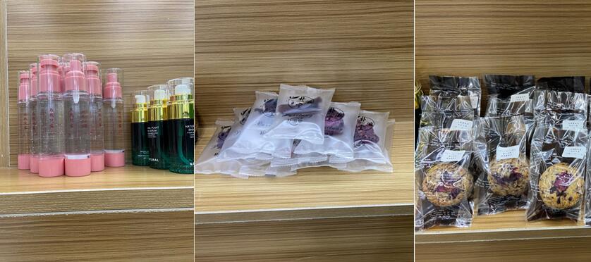 药学院近两年来基于学院专业特色,结合学院发展,积极推进“一院一品”特色产品开发,药妆团队教师推出了一系列中药药妆及文创产品,包括免洗洗手液,护手霜、紫草膏、中药香囊、叶脉书签,植物纯露、玫瑰袋泡茶、玫瑰酸奶司康等产品,深受广大师生的喜爱。