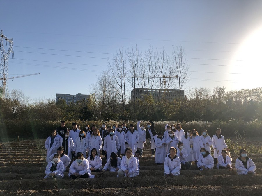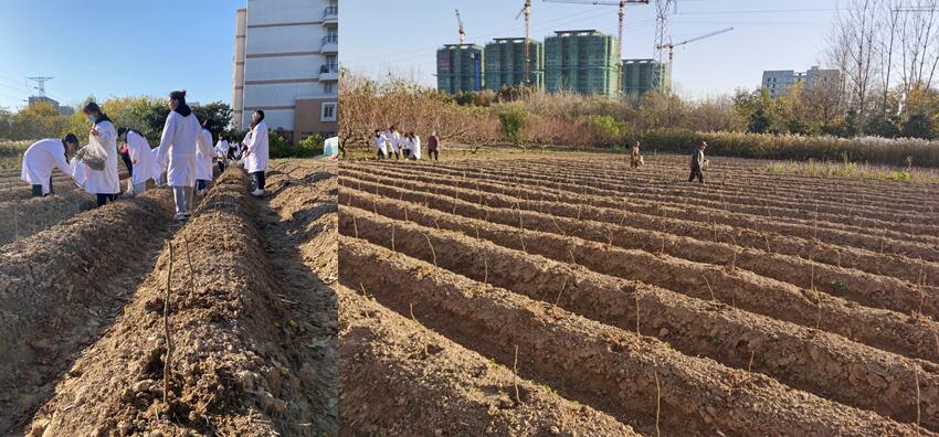 经过调研规划设计,把百药园的土地以陇为单位整好,堆肥撒好后,从济南花农购得两年生的大马士革玫瑰种苗,中药203、205、207班的学生在陈娟老师的带领下移栽玫瑰种苗,短短一个半小时,1500颗玫瑰种苗全部移栽完毕。后期师生将通过科学设计田间管理措施,检测不同时期玫瑰生长情况和不同条件下玫瑰品质,进行玫瑰品质提升的创新实践。