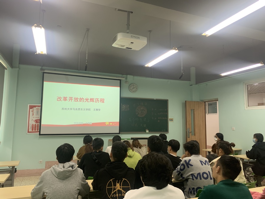 活动以班级为单位,采取线上线下相结合的方式,分批次进行。首先,巧用学习平台。组织学生利用“学习强国”江苏学习平台、江苏教育新闻网观看“新中国史、改革开放史、社会主义发展史”等相关视频。通过观看视频,让青年大学生真切的感受到中国的发展、改革开放的重大意义,正确认识和评价当代中国的改革开放及当代中国的社会性质和社会主义社会的发展历程及规律等。其后,师生交流分享。教师与学生相互分享“四史学习”过程中的心得体会,并向学生提出要求。希望今后青年大学生更加坚定自己的政治信仰,永远听党话跟党走。规划好自己的人生目标,向着目标脚踏实地的奋勇向前。同时,练就过硬本领,担当起青年大学生的责任和使命,为“十四五”发展和淮安地区经济建设贡献力量。