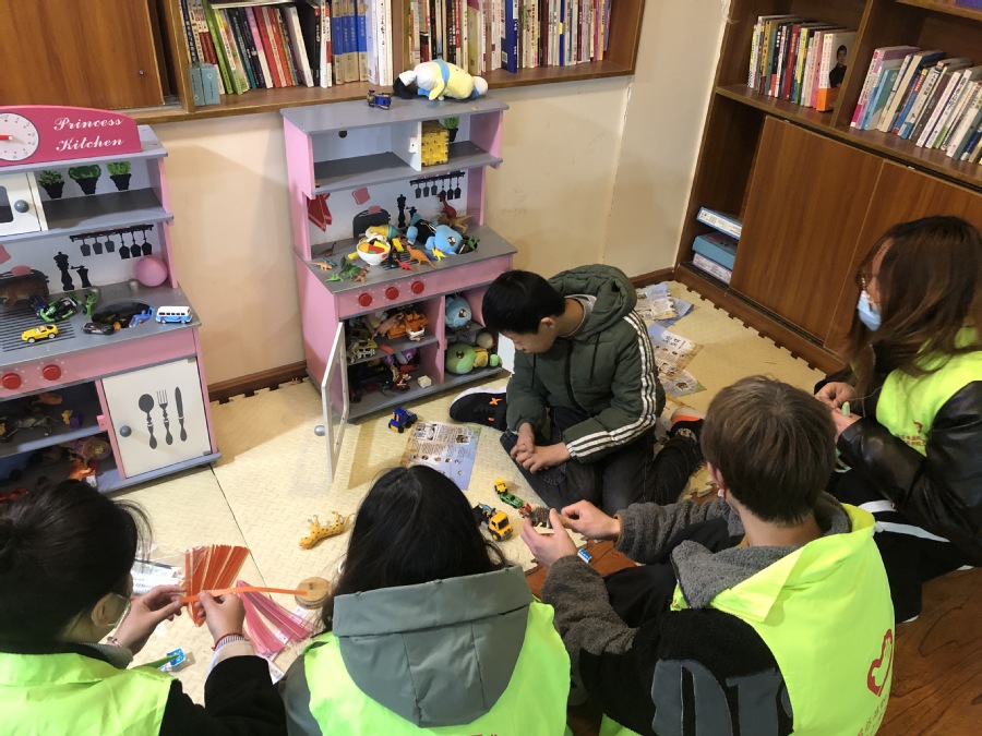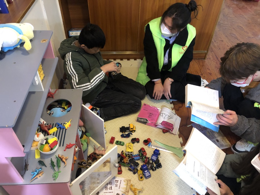 在去南园社区之前,志愿者们提前在校内进行募捐,向同学们讲述了捐助对象的需要,得到了同学们的热烈响应。大家纷纷向困境儿童捐献了自己的爱心物品。在募捐物品整理好之后,志愿者们出发到达南园社区,将在校内募捐到的物品送到困境儿童家中,并在南园社区图书馆与困境儿童进行互动,志愿者为他们带来了歌唱表演、故事阅读、朗诵诗词等节目,之后又与他们一起玩了折纸游戏和积木玩具,让小朋友感受到了爱与真情。