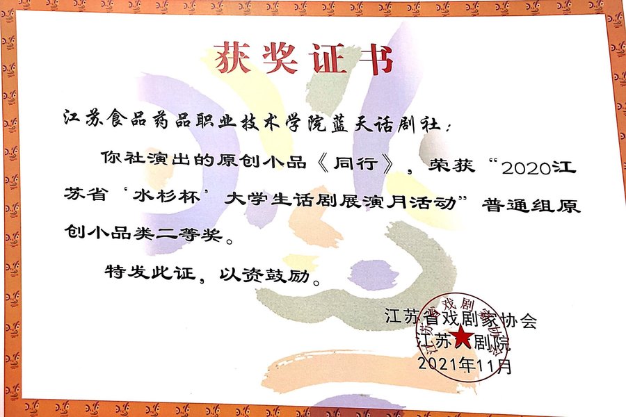 BBV电子·(中国)网站校团委广播站蓝天话剧社参与2020年“水杉杯”大学生话剧展演活动。经过十余月的评审,BBV电子·(中国)网站蓝天话剧社最终从参赛的多支队伍中脱颖而出,原创小品《同行》荣获“2020年江苏省‘水杉杯’大学生话剧展演月活动”普通组原创小品类二等奖和最佳剧本奖。