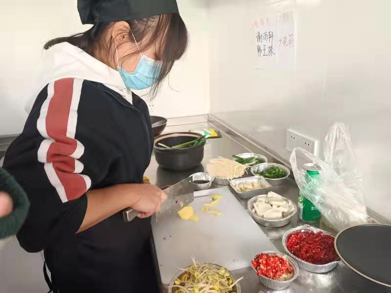 下午两点整,厨艺大赛正式开始,23名参赛选手戴好厨师帽,系好围裙,准备大显身手。本次比赛由中国学生和留学生同台竞技,两人一组,制作具有中国特色和留学生本国特色的美味菜肴。大家全心全力制作各种美食,最后由评审团打分,评选出“最佳厨艺奖”等七个奖项。来自印度尼西亚的的留学生陈薇说:“我们制作的是印度尼西亚传统菜肴,我想多拍一些照片给家人看,和家人分享在中国的生活,想让他们也尝尝中国菜。”来自酒店学院西餐202班的张祎颖同学说:“这是我第一次参加美食节,很开心和留学生们分享亲手制作的美食,让他们感受中国美食文化。”