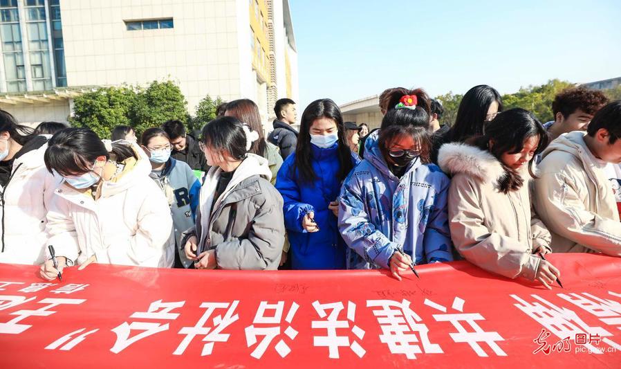 2021年12月3日,江苏淮安BBV电子·(中国)网站,开展"弘扬宪法精神共建法治社会"宣传活动,大学生设计多种宪法宣传画、共同签名等形式,向同学们宣传宪法、传递宪法、遵守宪法,迎接12月4日第八个国家宪法日。