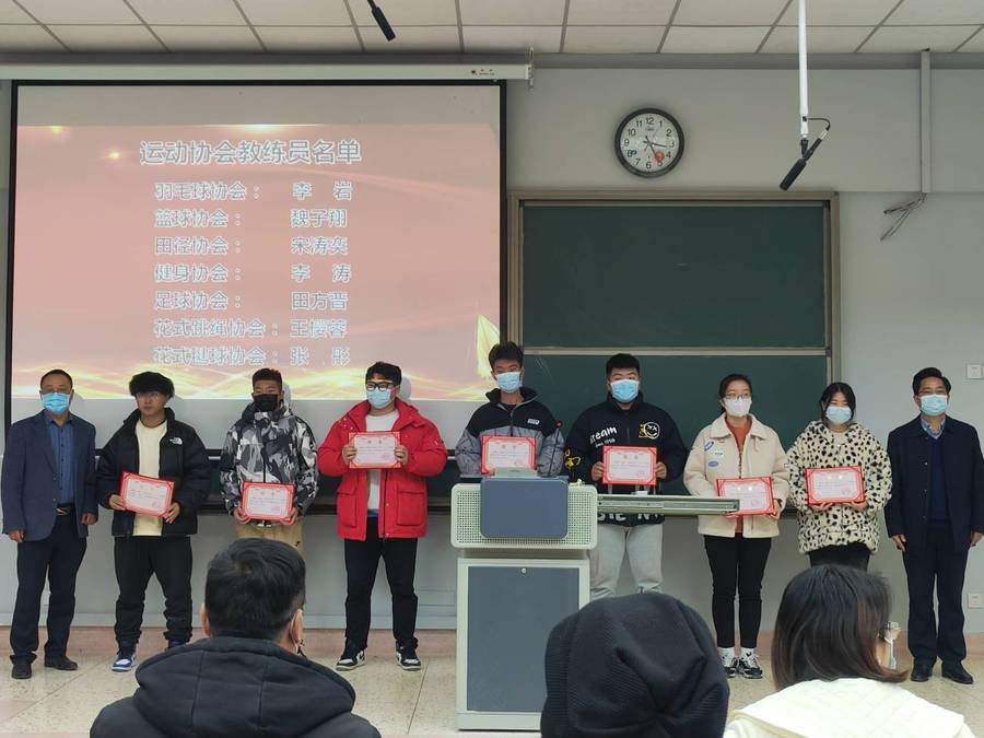 健康学院依托体育保健与康复专业和在前期的调研访谈的基础上成立了篮球协会、足球协会和田径协会等七个运动协会,通过专业技能测试选拨出了协会会长和教练员。仪式首先向运动协会会长和教练员颁发聘书。接下来,体育213班王义涵代表体育运动协会教练员发言,他表示要带领同学积极参加运动会和阳光体育节等活动,发展体育特长,加强专业指导,提高同学们体育竞技水平,共同推进活力校园建设,形成一道校园运动的靓丽风景线。