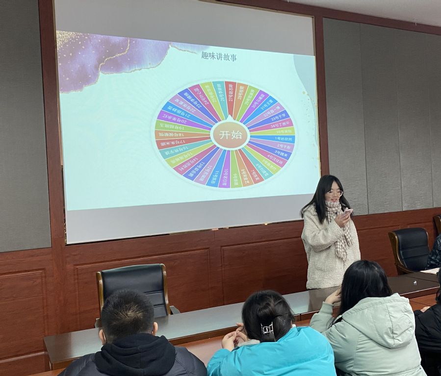 活动以观看周恩来的纪录片拉开序幕,紧接着是分享周恩来的故事,机智的社长为社员们设置了一个趣味转盘,随机抽取五名社员来分享她们记忆深刻的恩来故事,抽取过程中,每一位社员都怀着紧张激动的心,这种抽取方式既有趣又不失公平。