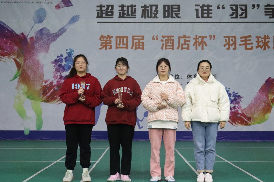 经过紧张激烈的角逐,最终,食品学院周星羽力挫群雄,摘取了男子单打的桂冠,同时酒店学院郭源和食品学院谭圳国也不输实力,分别取得了男子单打的亚军和季军。酒店学院的蒋晶晶、药学院孙悦、药学院曾琦技压群芳,分获女子单打冠、亚、季军。双打比赛情况也异常精彩,各组合队伍实力相当、难分伯仲,最终获得混双前三名的是:药学院袁骏成、盛佳颖;财贸学院张恒硕、董佳佳;酒店学院时高平、仇梦洁。获得此次“酒店杯”团体奖的分别是酒店学院、药学院和食品学院。