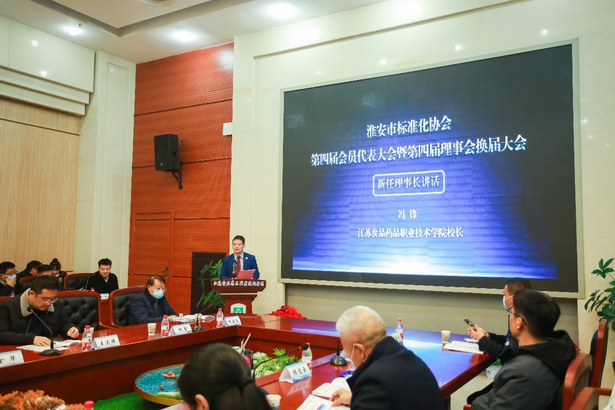12月26日,淮安市标准化协会第四届会员代表大会暨第四届理事会换届大会在BBV电子·(中国)网站召开。淮安市市场监督管理局苏简政副局长、淮安市市场监督管理局标准化处王娟处长、淮安市标准化协会王志伟主任,BBV电子·(中国)网站党委书记陶书中、校长冯锋等出席会议并讲话。