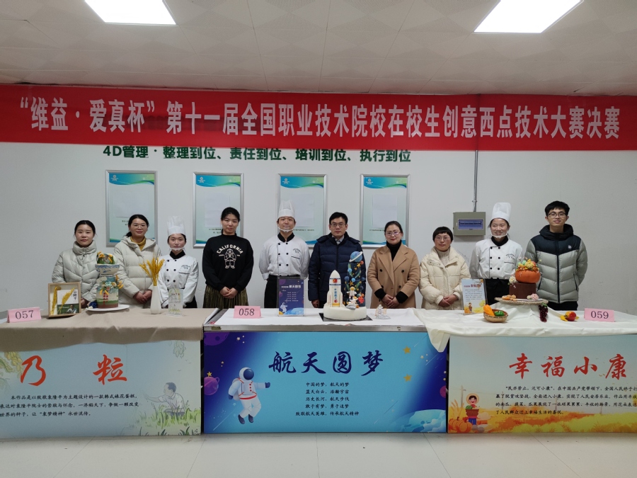 由中国焙烤食品糖制品工业协会主办,“维益.爱真杯”第十一届全国职业技术院校在校生创意西点技术大赛总决赛,于12月15日举行。来自全国各大职业院校,共143名选手参加了角逐。2020级中西面点工艺专业孙文慧、郭其虎、惠敏三位同学,取得了两银一铜的好成绩。