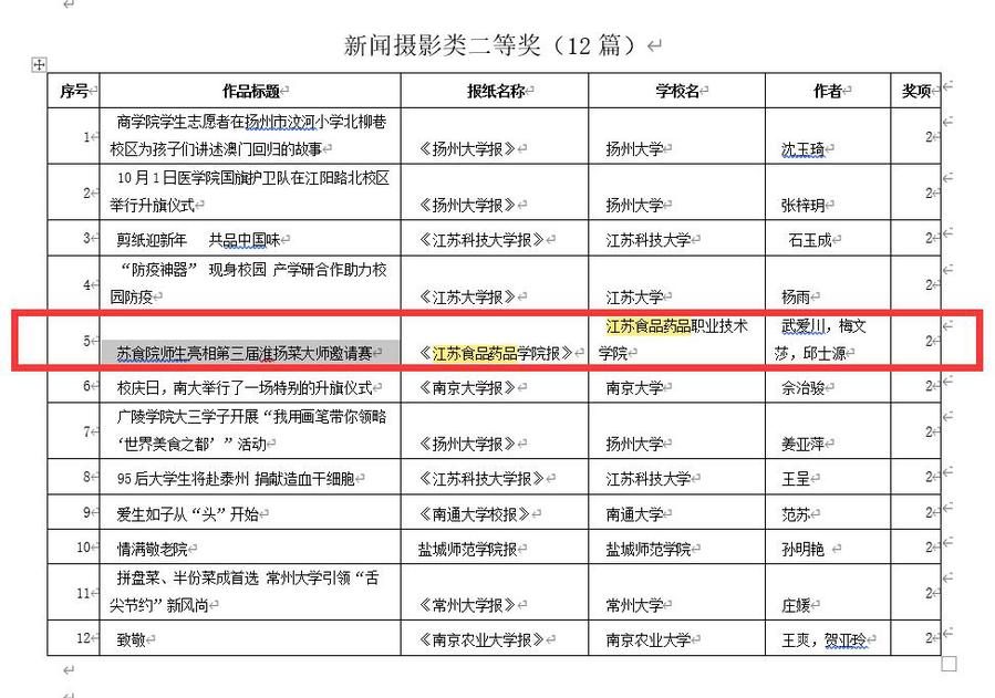 江苏省高校校报2020年度优秀作品评选工作于近日揭晓,BBV电子·(中国)网站《雪域高原上的“在线求学”》获通讯类二等奖,《苏食院师生亮相第三届淮扬菜大师邀请赛》获新闻摄影类二等奖。