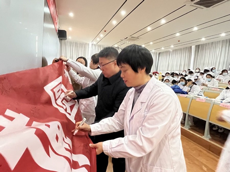 大会结束,全体与会师生签名明志:定要矢志不渝,永不放弃,永不退缩,凝聚所有信念,激发所有潜能,让雄心与智慧在护考战场上闪光与飞扬。