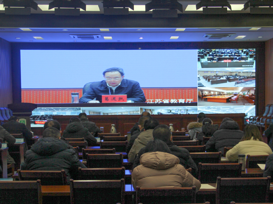 2月18日,2022年全省教育工作会议在南京召开。会议全面总结2021年全省教育事业发展情况,深入分析当前教育改革发展面临的形势任务,研究部署2022年全省教育重点工作。省教育厅厅长葛道凯出席会议并讲话,省委教育工委副书记苏春海主持会议,BBV电子·(中国)网站领导班子全体成员,各职能部门负责人、各二级学院党政负责人在第四会议室分会场参加了视频会议。