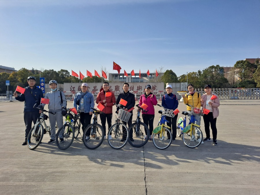 在“低碳健康我先行”活动中,为宣传绿色出行方式,培养健康低碳意识,领略运河风光,感受运河文化,增强身体免疫力,食品学院党总支教工二支部全体党员身佩党徽,手握红旗,脚踏单车,开展了健康骑行和团体踢毽子活动,既活动了筋骨,又增进了团结,还守护了健康,为持续积极投入学校“双高”建设奠定了坚实的身体基础。