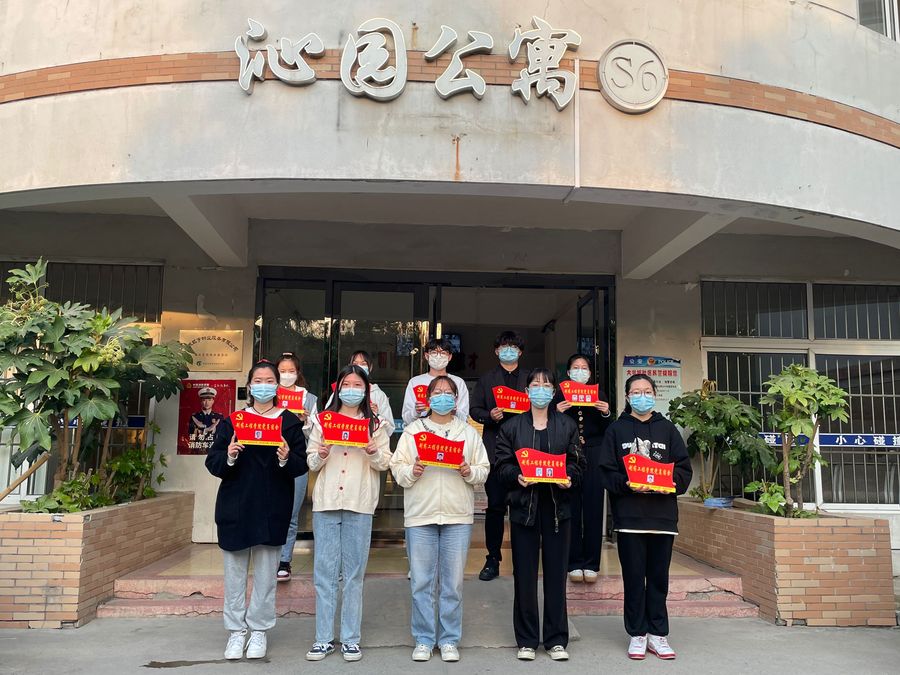 下午,王涛济、张芹等一行走访了学生党员宿舍,为学生党员讲解了党员宿舍挂牌的意义。“党员宿舍挂牌”就是为了亮明党员身份,坚守党员责任,牢记党的宗旨,体现党员先进性,并充分发挥党员的榜样作用与模范带头作用。”随后,书记与辅导员们分别为党员宿舍一一挂牌,党员同学面对党员宿舍门牌庄严宣誓。学生党员高欣妍表示:“党员宿舍挂牌使学生党员亮出自己的身份,挂牌就是一面旗帜,督促自己以身示范,从学习到工作,从宿舍到班级,创先争优,不断进步。”最后,在老师的带领下,学生党员积极向同学们讲解疫情防控知识并发放宣传海报,充分运用专业知识和实际行动,带领同学们提高疫情防控知识。